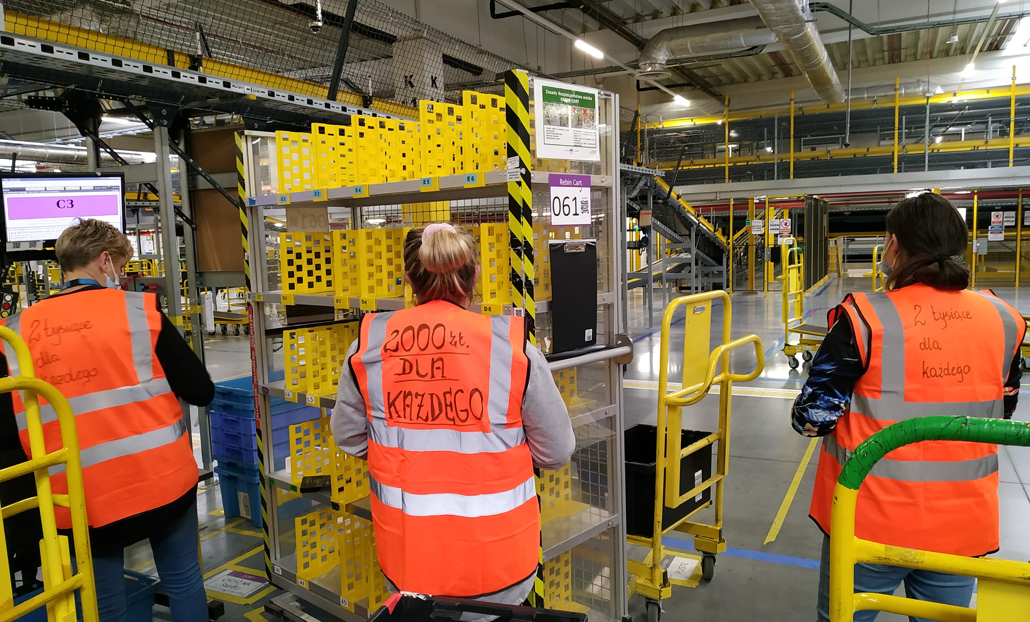 Magazyn Amazon WRO1 w Bielanach Wrocławskich to jedyny magazyn spółki w Polsce, który obsługuje artykuły wielkogabarytowe. W magazynie pracuje ponad tysiąc operatorów wózków widłowych, którzy rozkładają i zbierają zamówione przez klientów przedmioty z regałów wysokiego składowania. Amazon w Polsce, który zatrudnia 18 tys. osób bezpośrednio, co roku jesienią rekrutuje na okres przedświąteczny dodatkowo tysiące pracowników agencyjnych - w tym roku zadeklarował pracę przez agencję 14 tysięcy osobom. W magazynach pod Wrocławiem musiało zabraknąć rąk do pracy, skoro agencje zaczęły oferować dodatkowy bonus rekrutacyjny dla nowozatrudnionych w wysokości 2 tys. zł.
